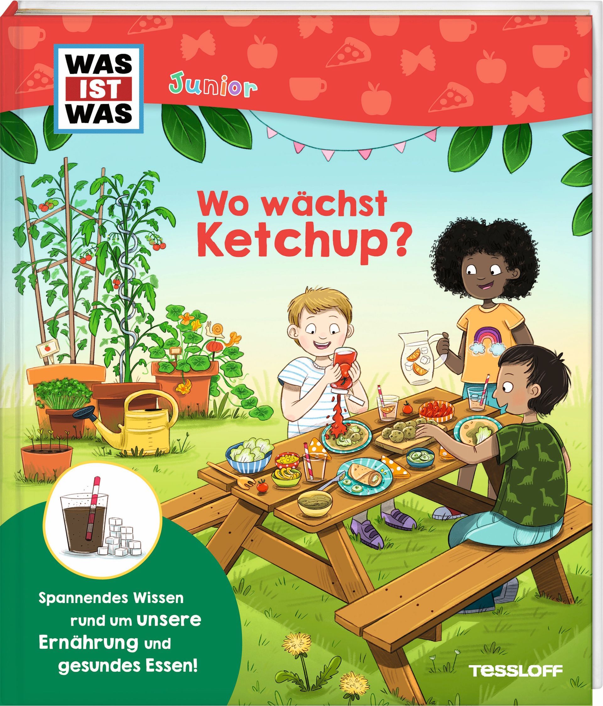 Woher kommen Fischstäbchen? Wie entsteht aus Milch Butter? Warum braucht man für Kaugummis Bäume? Wo wachsen Haselnüsse? Wie kommen die Löcher in den Käse? Wie viel Zucker ist in Fertigpizza und sauren Gurken versteckt? Warum ist Obst in Supermärkten immer am Eingang und warum liegen Schokoriegel an der Kasse? Warum gibt es im Winter Tomaten und Mangos? Kann man Löwenzahn essen? Und wie funktioniert gesunde Ernährung, die trotzdem schmeckt? Das Kinder-Sachbuch „Wo wächst Ketchup?“ aus der Reihe WAS IST WAS Junior taucht in die Welt des Essens ein, mit vielen Infos, Illustrationen, Klappen zum Öffnen und leckeren Rezepten zum Nachkochen.